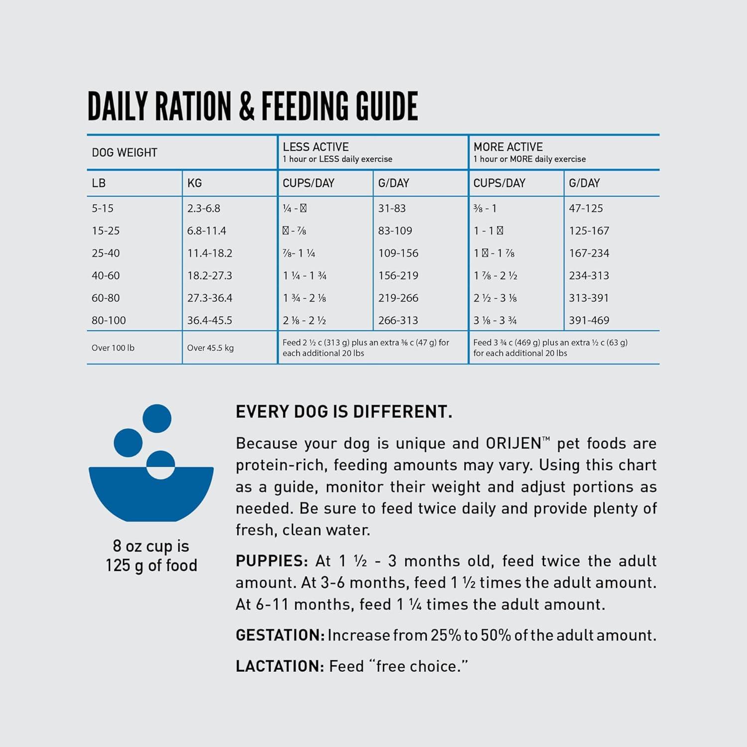 Nourish your dog completely with the amazing animal protein and quality grains found in ORIJEN AMAZING GRAINS Original Dry Dog Food. This dog food kibble includes DHA and EPA from whole herring, salmon and pollock oil to help support immune function, healthy skin and a shiny coat. This ORIJEN dog food also contains prebiotics, probiotics, soluble and insoluble fiber from inulin, and the most amazing grains in a high-quality blend of oat groats, whole oats, quinoa and chia, providing a balanced fiber ratio to support your dog’s digestive health. Made with 90% animal ingredients*, this high-protein dog food is packed with all the nutrients your dog needs to thrive. The first five ingredients of this high-protein dog food are fresh or raw chicken, turkey, chicken liver, whole herring and salmon, giving your dog a strong source of protein, vitamins and minerals. Each delicious serving offers ORIJEN WholePrey ingredients including poultry and organs to provide your dog with the most succulent and nutrient-rich parts of the prey, and the freeze-dried dog food coating provides a burst of flavor dogs instinctively crave. Our included fresh ingredients are delivered refrigerated and our included raw ingredients are delivered frozen. NOURISH AS NATURE INTENDED *Approximate 90%. Derived from the unprocessed state of the ingredients.