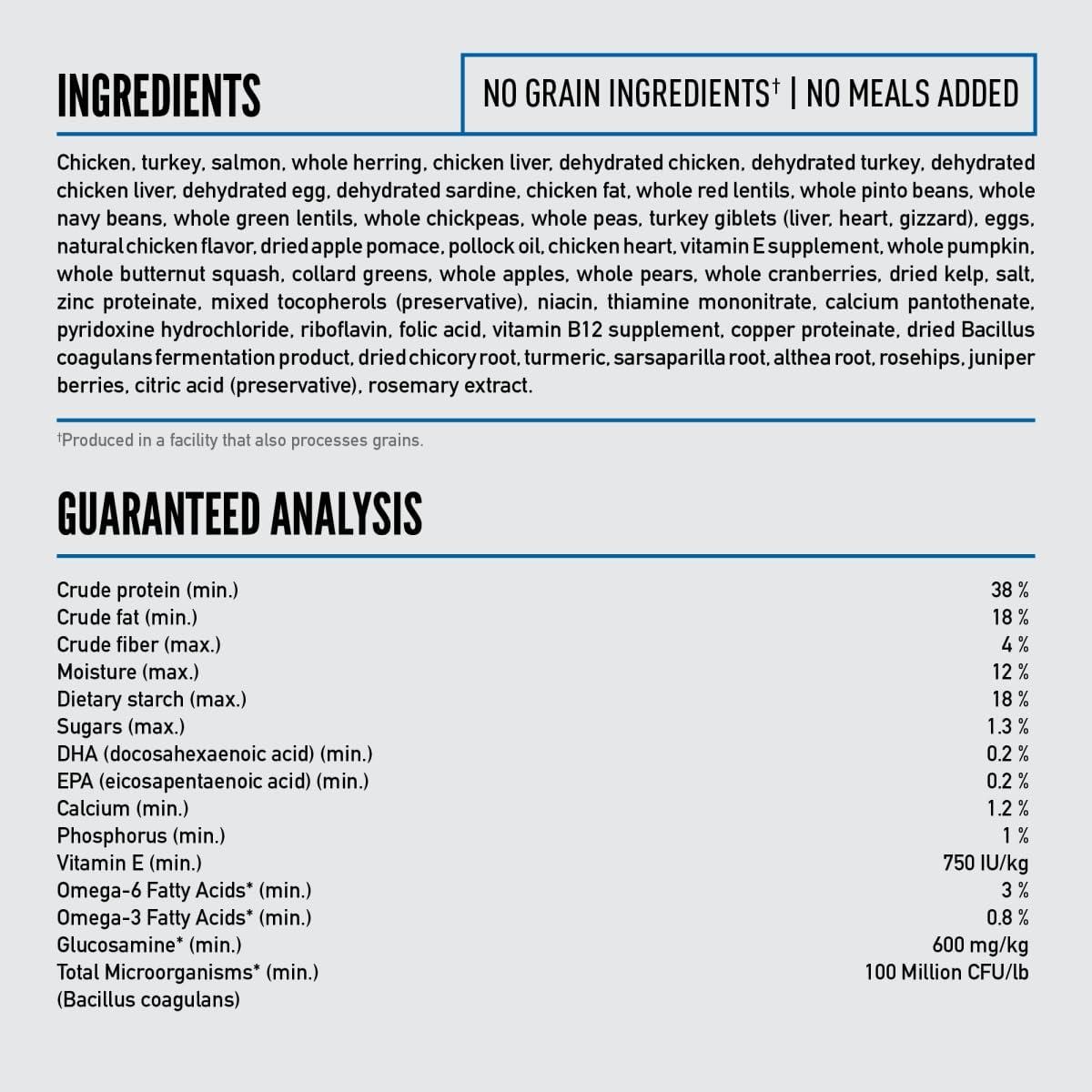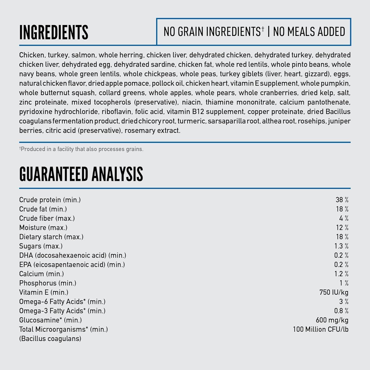Grain free* dog food containing 85 percent** animal ingredients, including WholePrey ingredients like nourishing organs to mimic what your dog's ancestors consumed in the wild