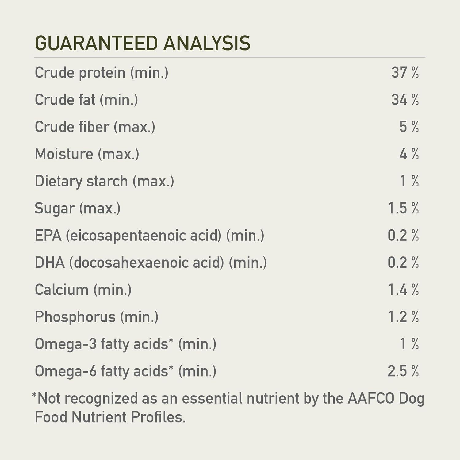 Help your dog thrive with ORIJEN TUNDRA Freeze Dried Medallions. This ORIJEN freeze dried dog food and topper is a concentrated source of animal protein that's freeze dried to lock in the rich nutrients and flavor of raw animal ingredients. With a Biologically Appropriate recipe, this high protein dog food is based on what your canine's ancestors consumed in the wild. Containing up to 90 percent quality animal ingredients*, ORIJEN grain free** freeze dried dog food provides a high protein diet. Ingredients include venison, duck, wild-caught flounder, whole herring, lamb, wild boar and goat, giving your dog a strong source of protein, vitamins and minerals. ORIJEN WholePrey ingredients including organs and bones provide your dog with the most succulent and nutrient-rich parts of prey. Serve this dog food as a nutrient-rich meal by adding warm water and stirring or enhance your dog's favorite meal by crumbling ORIJEN TUNDRA freeze dried medallions and using them as a dog food topper. Our included fresh ingredients are delivered refrigerated and our included raw ingredients are delivered frozen. *Approximate 90%, and derived from the unprocessed state of the ingredients. **Produced in a facility that also processes grains