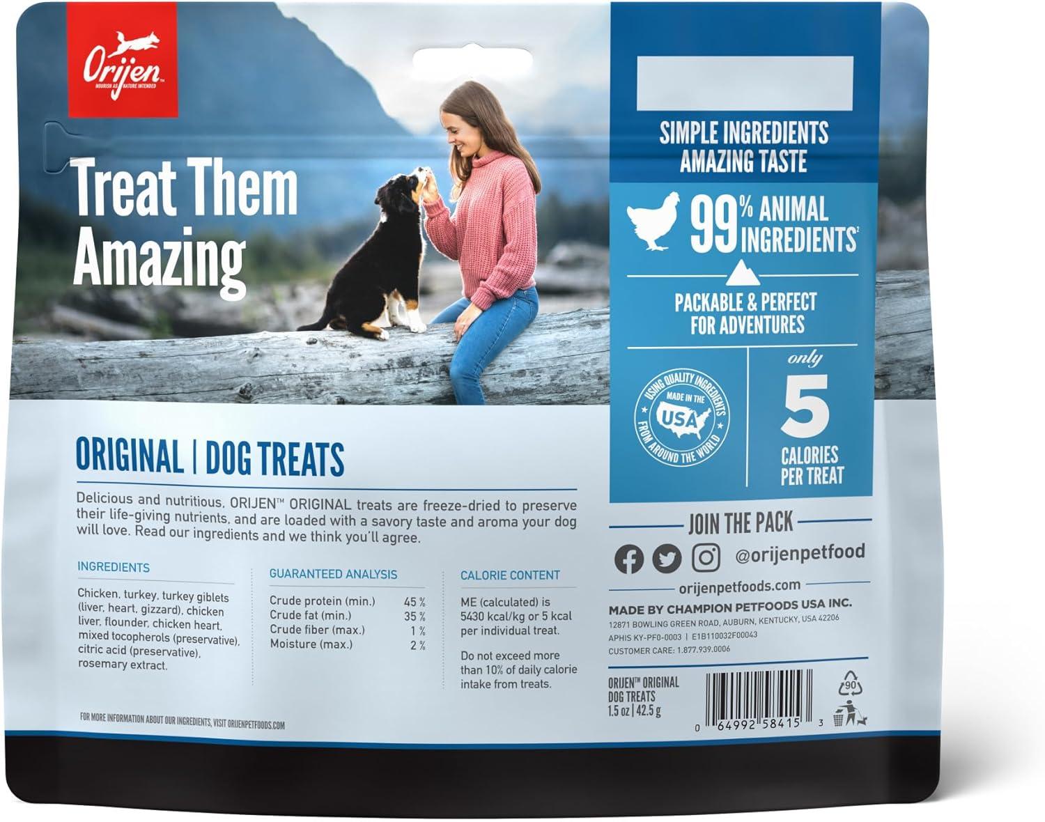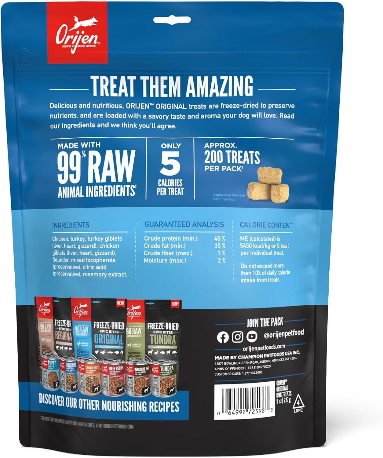 ORIJEN Grain Free High Protein Freeze Dried Dog Treats Original Recipe 8oz Bag(Original Recipe)
