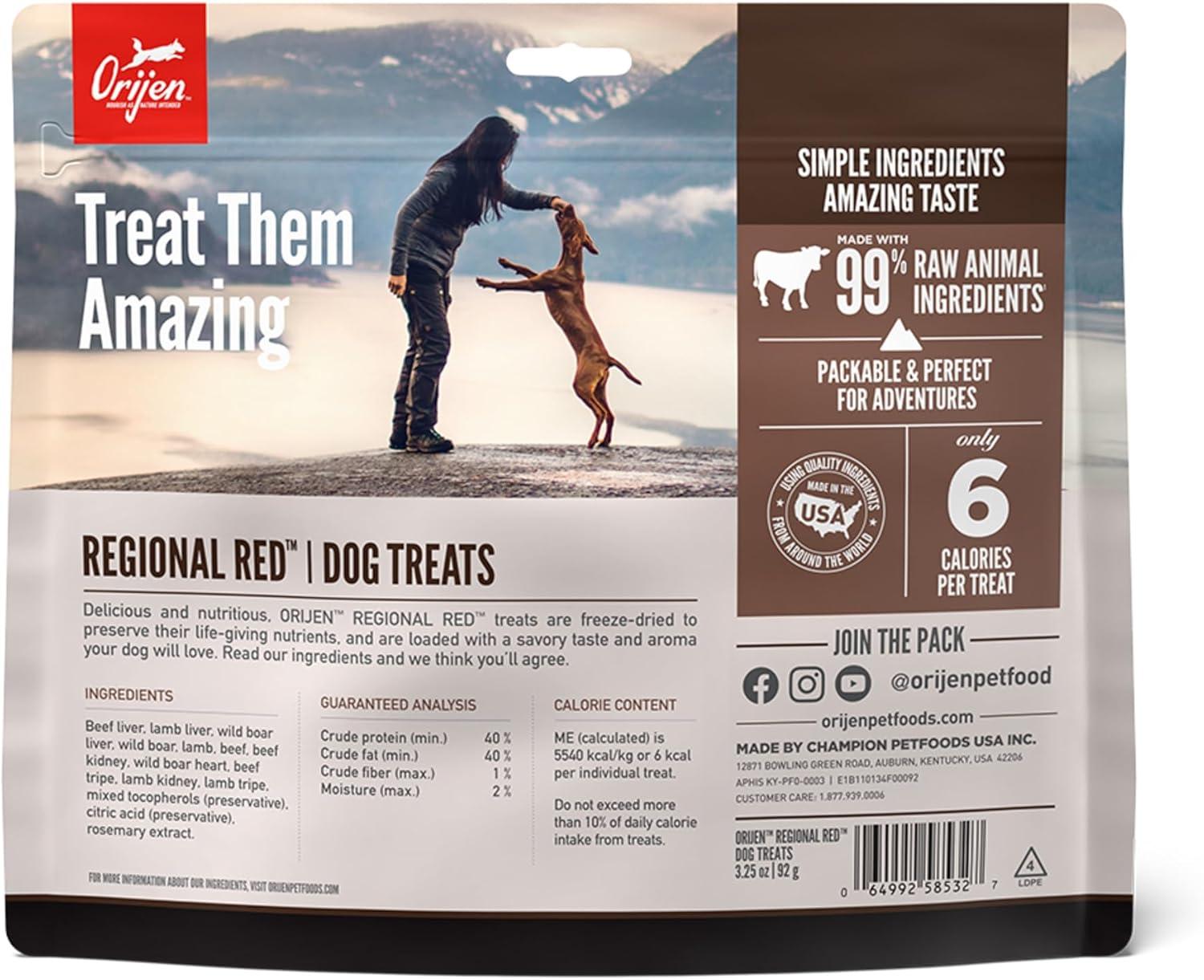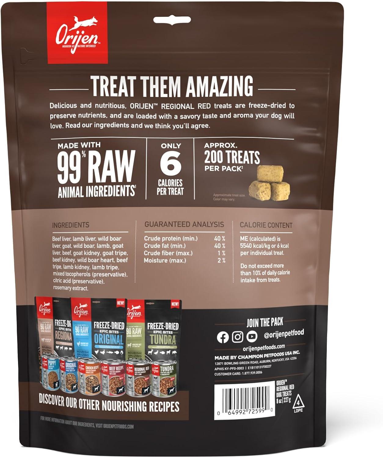 ORIJEN Grain Free High Protein Freeze Dried Dog Treats Original Recipe 8oz Bag(Regional Red Recipe)