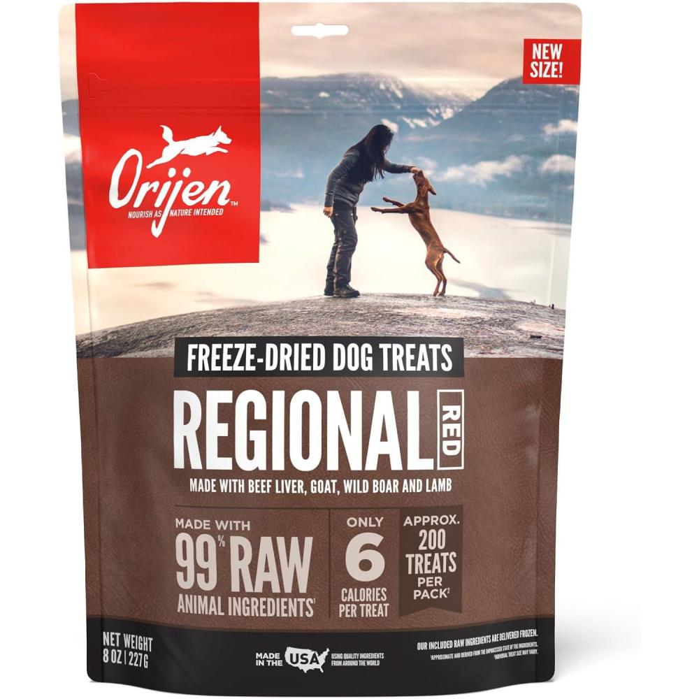 One (1) 8 oz bag of ORIJEN Freeze Dried REGIONAL RED Dog Treats