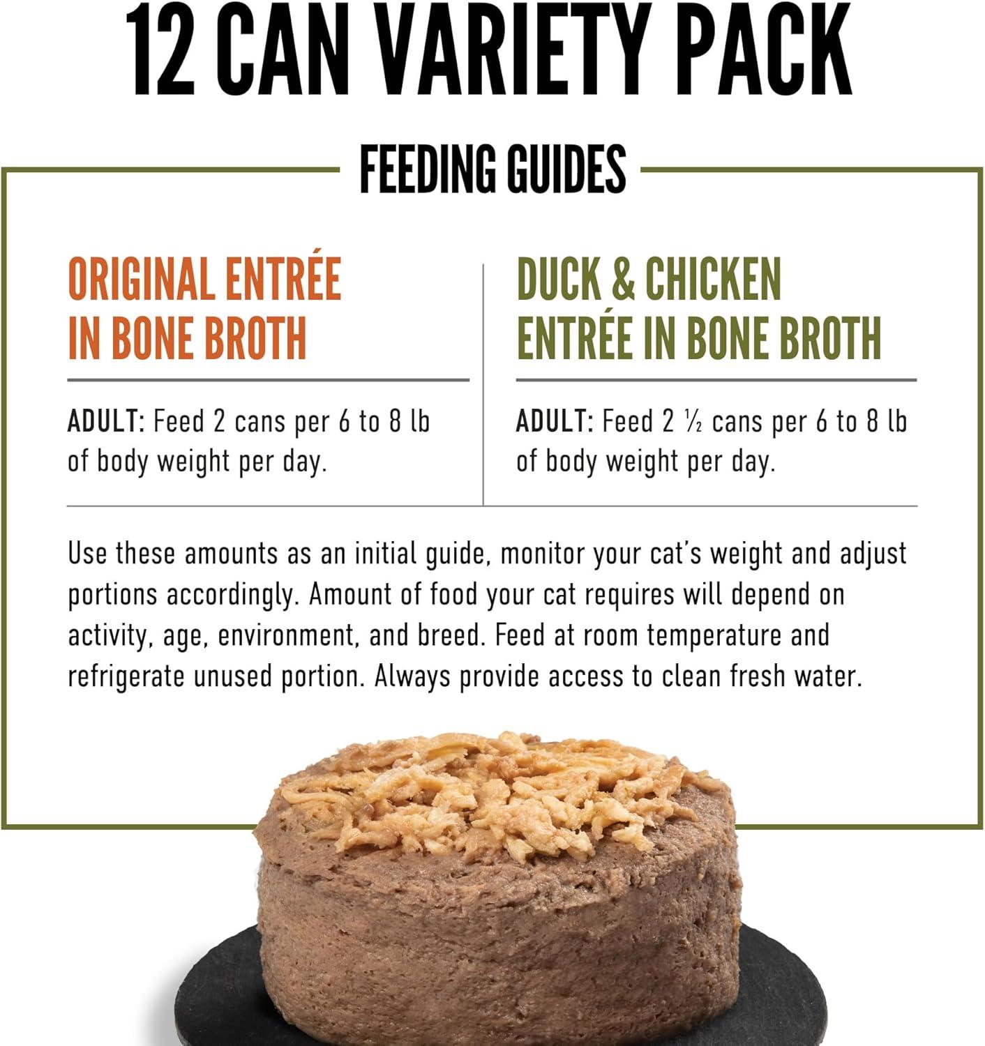 This wet cat food variety pack includes 2 poultry-based wet cat food recipes (Original Entrée and Duck & Chicken Entrée) in a convenient 12 pack.